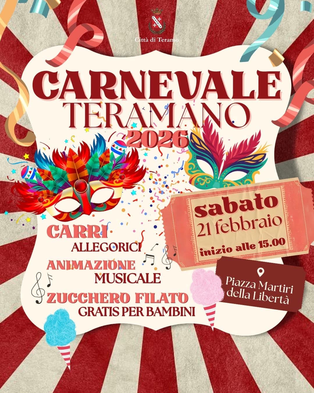 Torna il Carnevale Teramano con sfilata dei carri e musica in Piazza Martiri