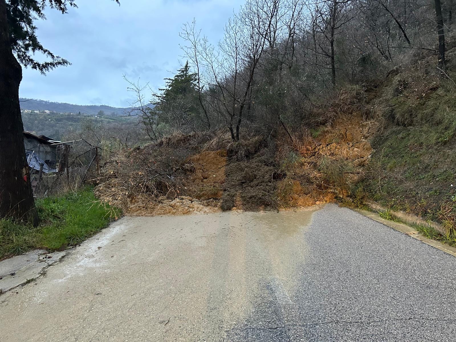 Una frana sulla provinciale 42 sbarra l'accesso a Montorio dalla frazione di Villa Vallucci