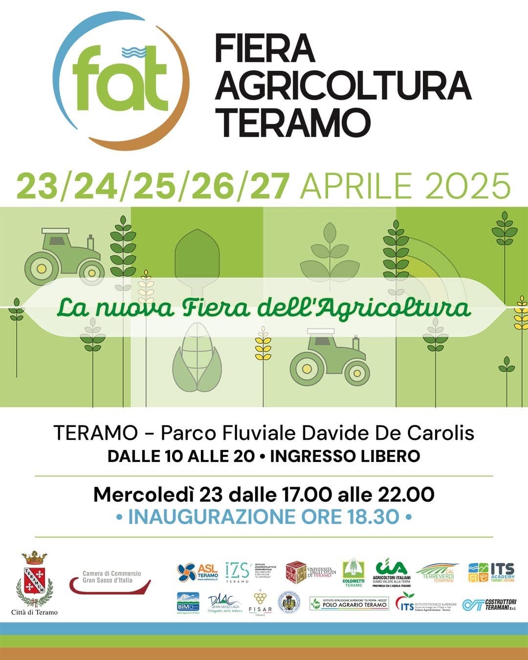 FAT 2025: si parte. Dal 23 al 27 aprile, il Parco Fluviale “Davide De Carolis” si trasforma nel cuore pulsante dell’agricoltura abruzzese per la 34ª edizione della Fiera dell’Agricoltura di Teramo